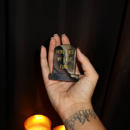 "Here Lies My Last Fuck" Gravestone- Volcanic Agate